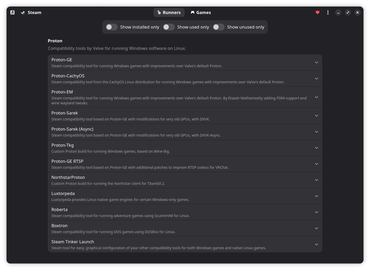 ProtonPlus 是一个 Proton 版本管理器,用于安装和管理 Proton 版本。它适用于 Steam、Lutris、Heroic Games Launcher 和 Bottles。它使用 GTK4。