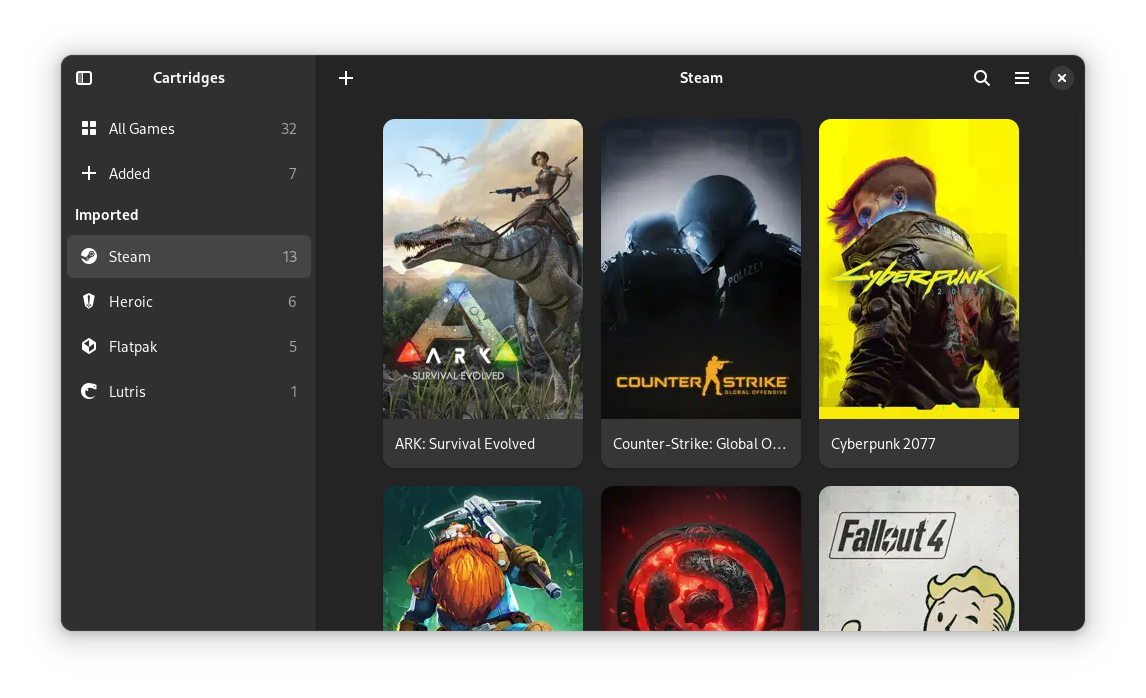 Cartridges 是一个用 Python 编写的,使用 GTK4 和 Libadwaita 的简单游戏启动器。