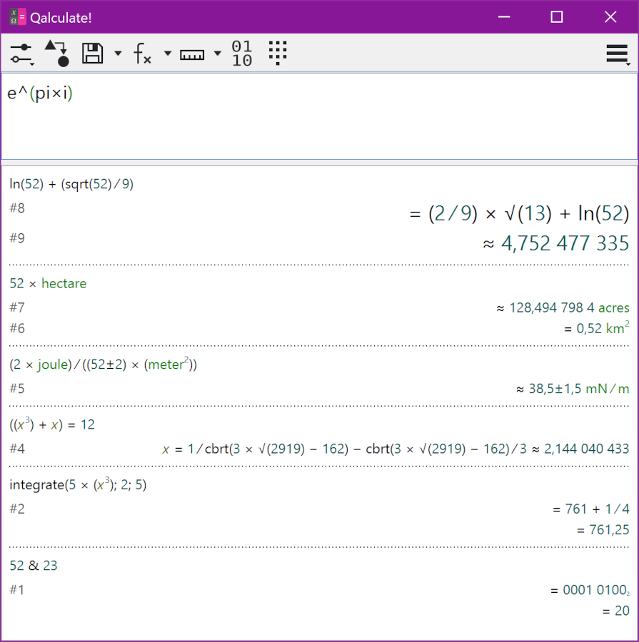 Qalculate! 是一个多平台跨桌面计算器。它易于使用,但提供了通常为复杂的数学软件包保留的强大功能和多功能性,以及对日常需求有用的工具(例如货币转换和百分比计算)。功能包括一个大型的可定制函数库、单位计算和转换、符号计算(包括积分和方程)、任意精度、不确定性传播、区间算术、绘图以及用户友好的界面(QT、GTK+ 和 CLI)。