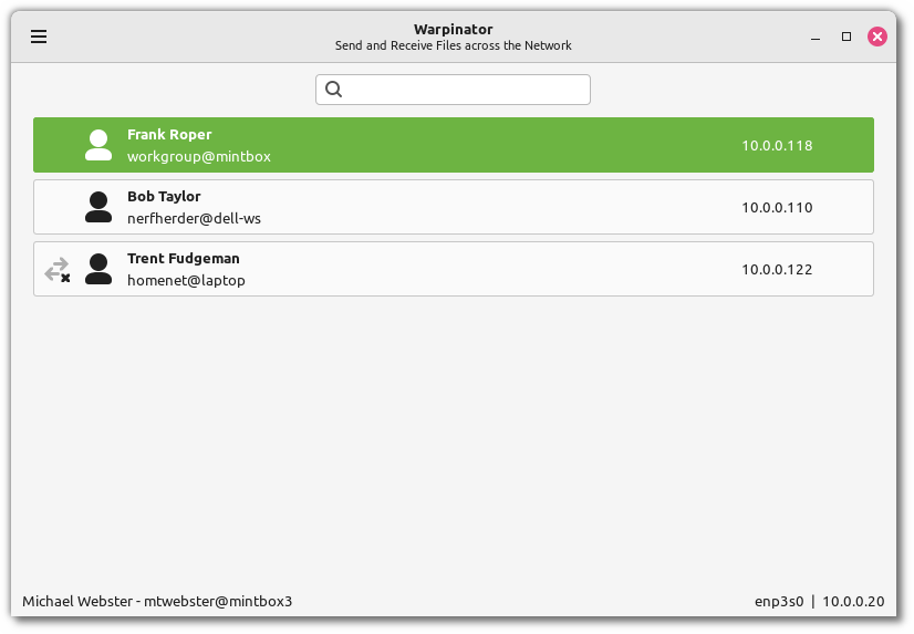 Warpinator 是一个简单的应用程序,允许用户在局域网内共享文件。
