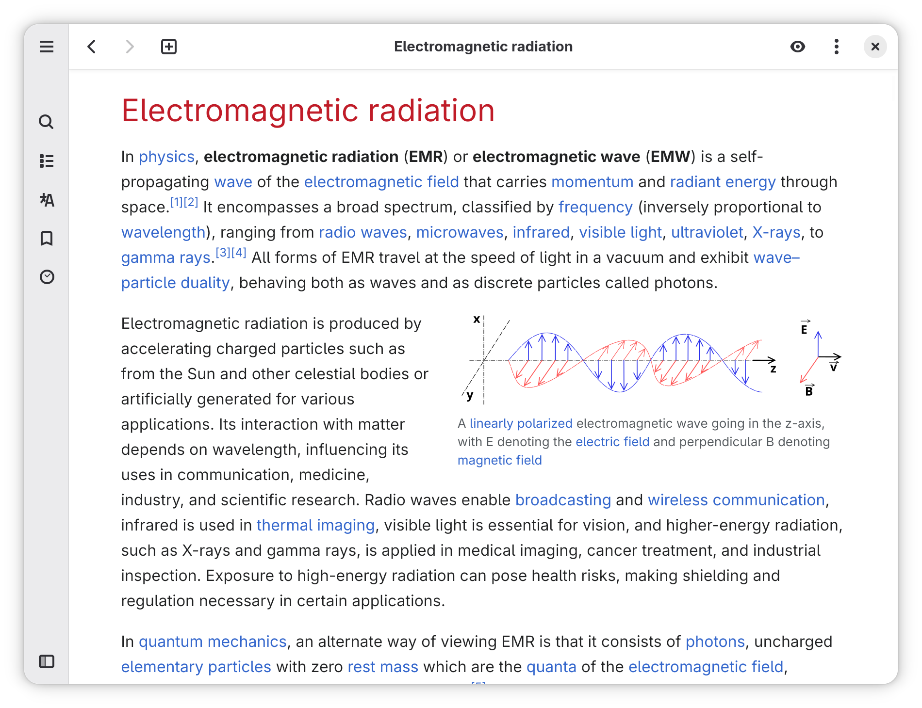 Wike 是 GNOME 桌面环境下的维基百科阅读器。它提供了一个本地应用程序,可以访问这个在线百科全书的所有内容,并以更简洁、更无干扰的方式查看文章。